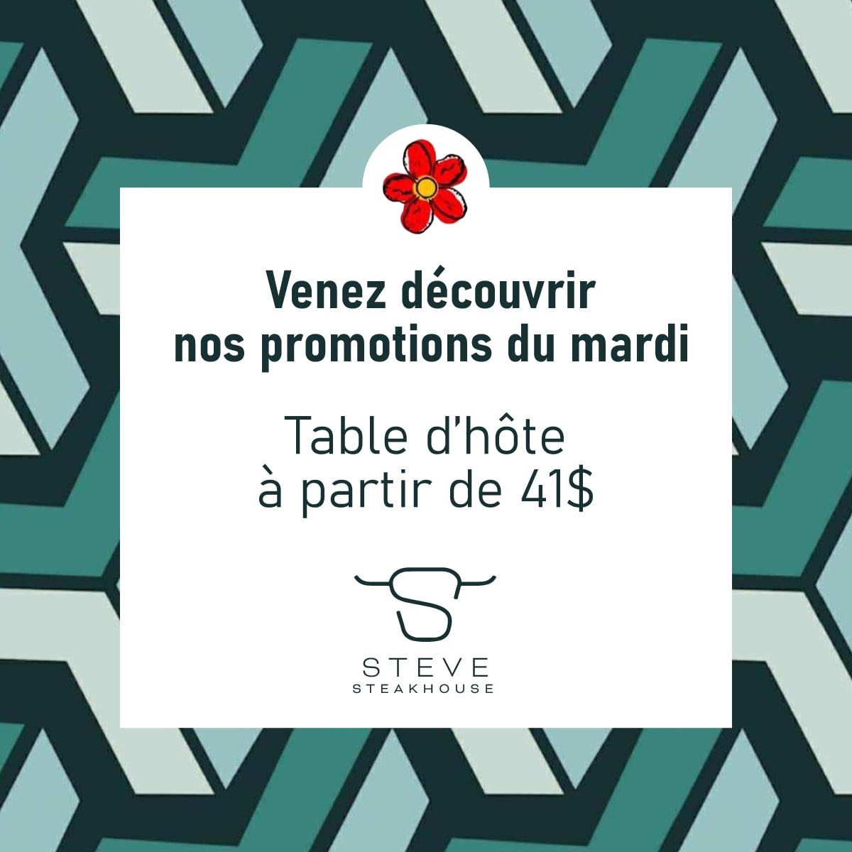 Steve Steakhouse vous offre l’endroit et le menu parfait pour tout type d’occasion. Venez y vivre votre moment inoubliable, on vous attend.